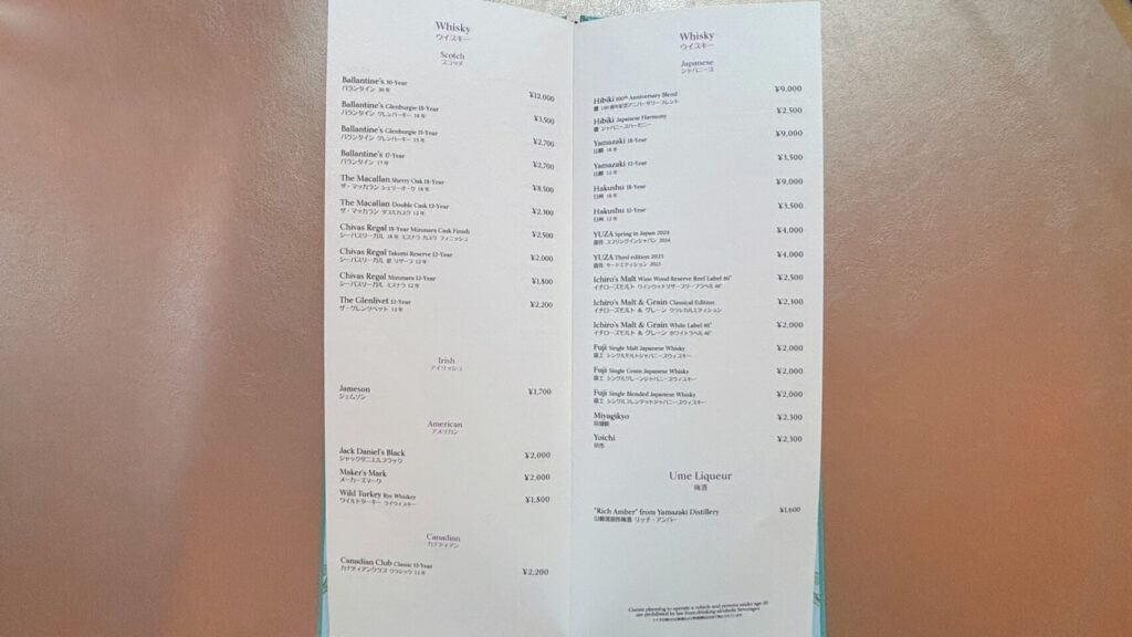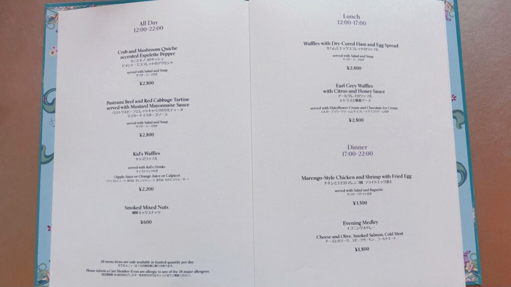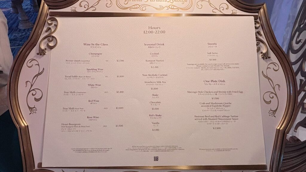 また、高級感あふれる「ファンタジースプリングスホテル」内のラウンジなだけあり、メニューの価格帯はお高めです。
