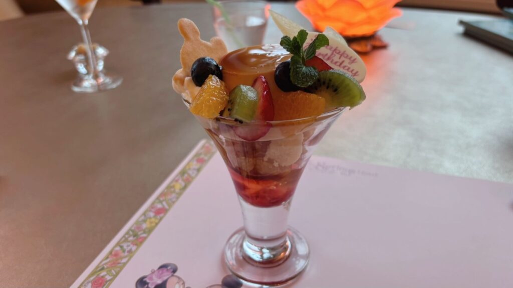 キャストのかたから、「お子様用のプリンのパフェもありますよ」とご案内いただき注文した“キッズパフェ”。