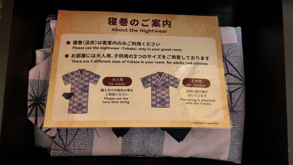パジャマは大人用と子ども用の2サイズで、浴衣タイプ。