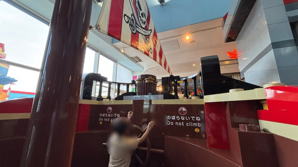 海賊船の操縦桿のコーナーも人気でした。