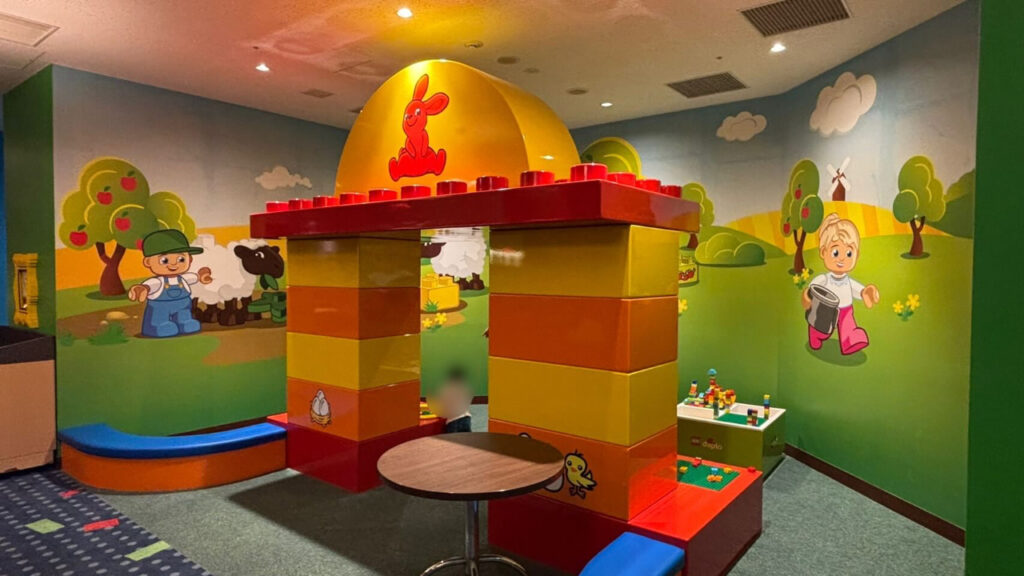 ここでももちろんレゴブロックの遊び場が。