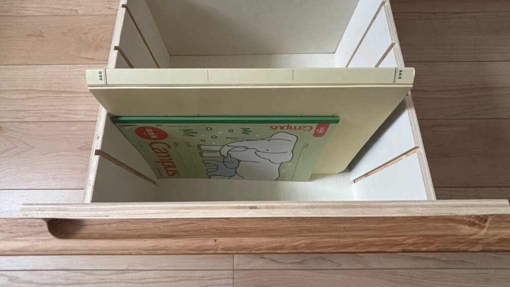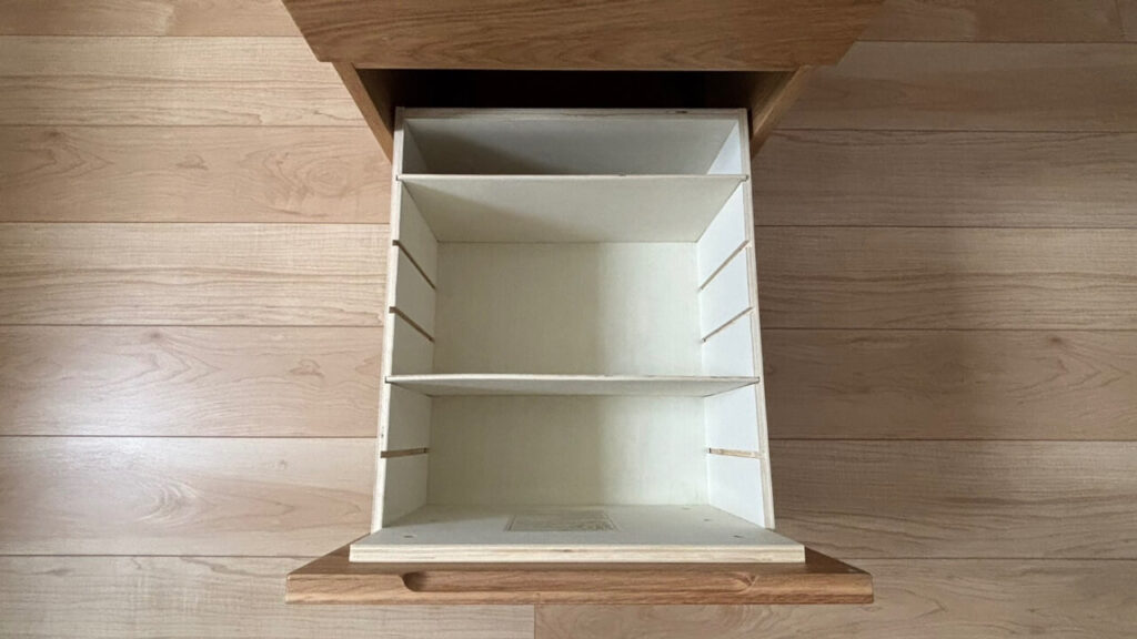 実際に使ってみると、見た目のシンプルさだけでなく、木の質感・サイズ感・使いやすさのバランスがとてもよく、子どもも大人もお気に入りのスペースが出来上がりました。