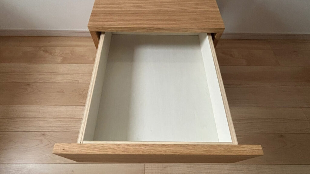 ニトリの方が同価格帯でやや収納が充実していたり、引き出し全てにレールがついていて開閉のしやすさが魅力でしたが、何より子どもが気に入ったことが決め手となり、無印を選びました。