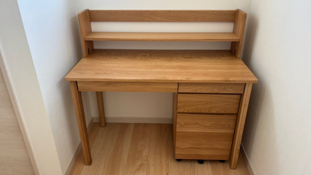 子どもの学習机を探していたところ無印の木製デスクを息子が気に入り、ちょうどお得なタイミングで購入することができました。