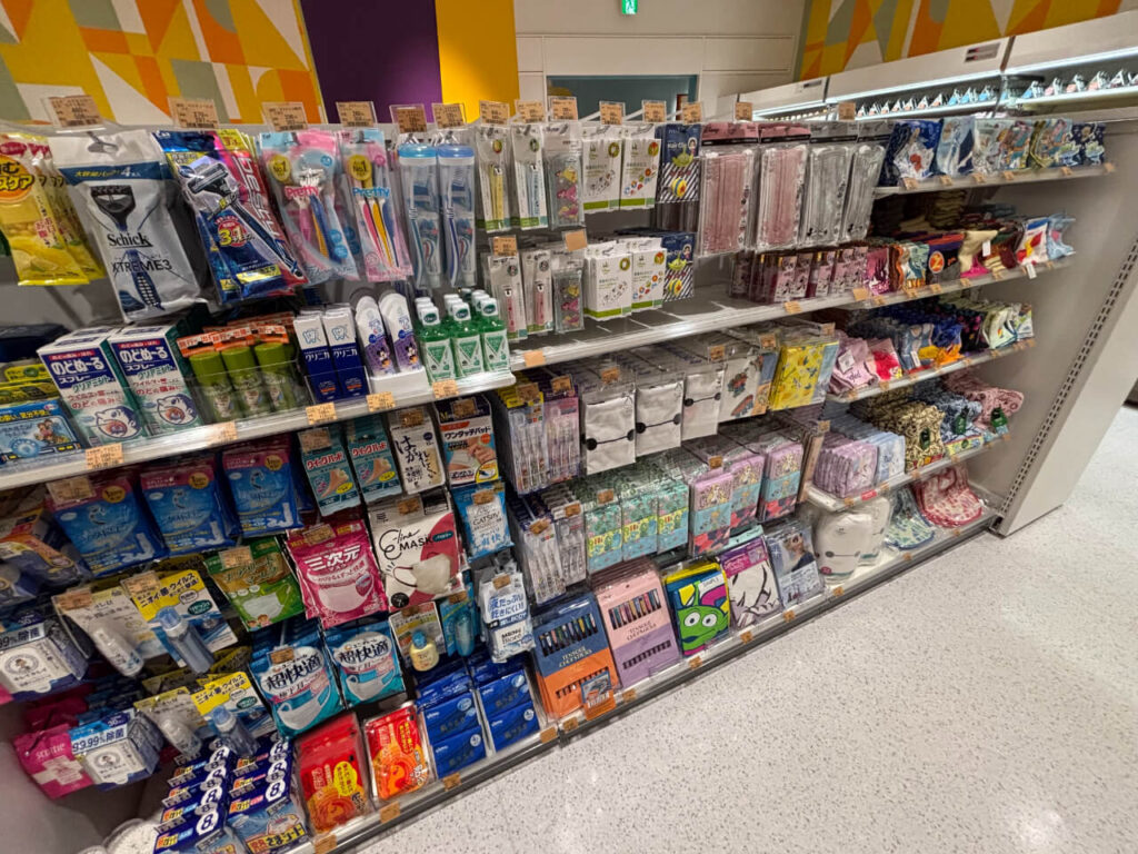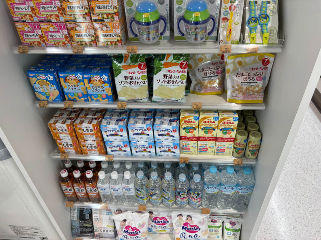 ソフトドリンクやお菓子、紙おむつなどのベビー用品まで販売しているので、子連れ旅行でも「もしもの時」に頼れる存在です。